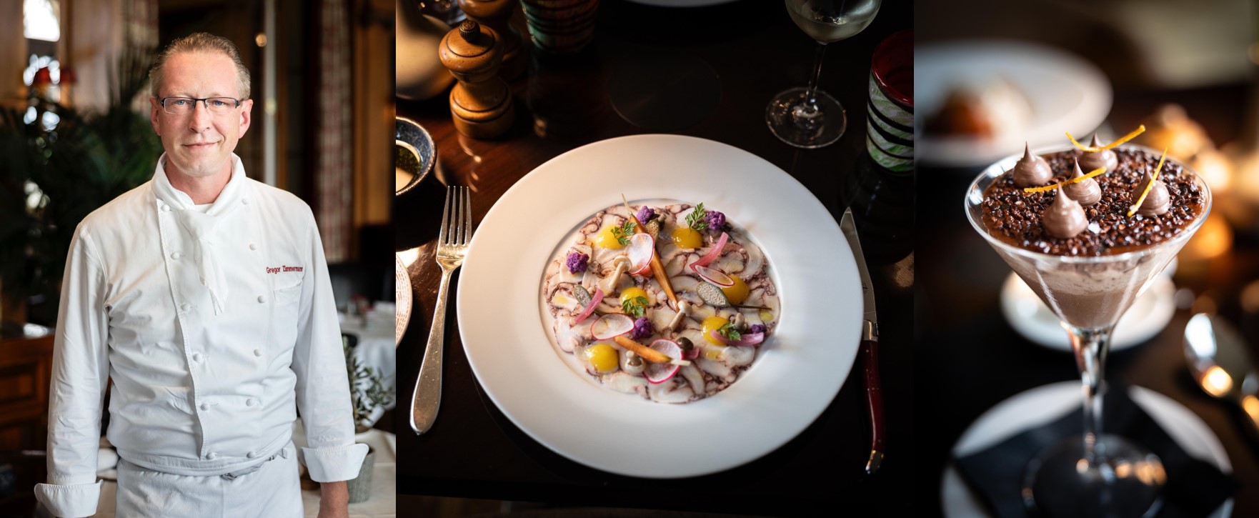 Gregor Zimmermann gilt als Meister darin, alpine Schweizer Traditionen mit globalen Einflüssen zu verweben. Jedes seiner Gerichte trägt eine Handschrift, die durch Klarheit, Raffinesse und Reduktion geprägt ist. Seine Gerichte erzählen Geschichten von Herkunft, Landschaft und Kultur – und machen aus jedem Menü ein Erlebnis, das weit über den Teller hinausgeht.